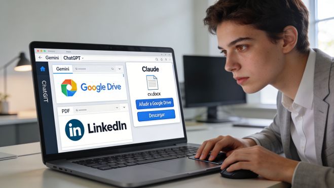 En esta comparación concreta, Claude se elige por una razón operativa Gemini no genera el archivo cuando se lo pides (solo devuelve un texto para copiar y pegar) y ChatGPT no ofrece la opción de guardarlo directamente en Drive. Aquí el valor no es solo "redacta un CV", sino "lo entrega como .docx y lo puede enviar a Drive".