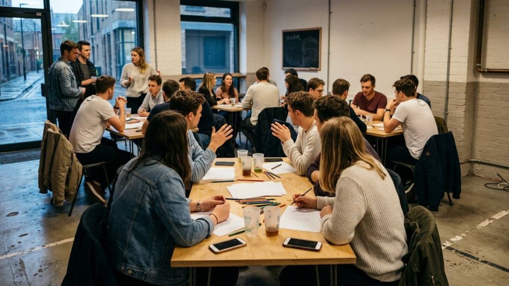 Donde Sonder intenta aterrizar su discurso es en los encuentros offline. La app organiza eventos presenciales en Londres como "Speed Drawing", "Presentation Night" y "Performative Male Contest". No son quedadas neutras ni genéricas tienen una estructura y una excusa social concreta. Eso importa, porque reduce la sensación de cita formal y desplaza la atención hacia una actividad compartida. Para mucha gente, conocer a alguien dibujando, escuchando presentaciones o simplemente participando en una dinámica rara puede ser menos agotador que una cadena de chats idénticos.