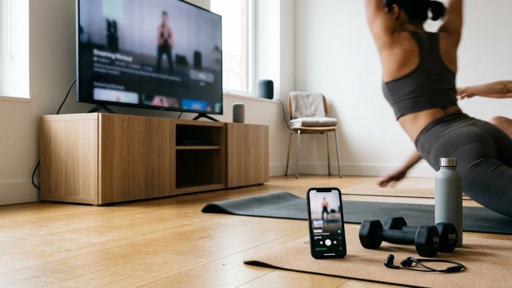 La parte más interesante está en cómo se adapta a distintos dispositivos. Se puede empezar un entrenamiento en vídeo en la televisión y continuar con una versión solo audio en el móvil o en un altavoz inteligente. Ese detalle tiene bastante sentido en situaciones reales. Por ejemplo, alguien puede seguir una clase visual en casa y, si necesita moverse a otra habitación o terminar la sesión sin pantalla, continuar sin cortar el contenido. También se pueden descargar las clases para usarlas sin conexión, algo útil para quien entrena en lugares sin buena cobertura o simplemente no quiere depender de Internet.
